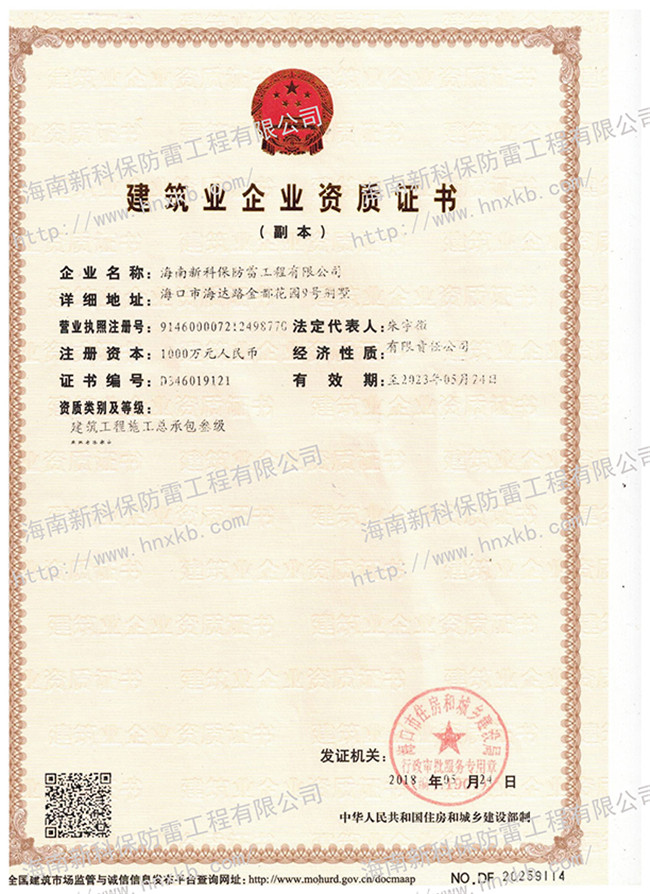 海南新科保防雷工程有限公司是一家集防雷技術(shù)研究、防雷檢測、防雷工程設計施工、安防監(jiān)控工程設計施工、建筑智能化施工、建筑水電施工于一體的高科技公司。在相關(guān)主管部門監(jiān)管下,致力于為客戶提供專業(yè)的安全防護、建筑智能化、水電技術(shù)等優(yōu)質(zhì)產(chǎn)品和工程服務。